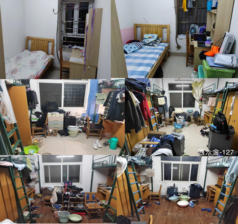 对于这小部分有安全隐患(如使用违规电器,存在插线板放置有隐患,电源附近存在易燃物品等)的宿舍进行了提醒,并作了检查记录。对于卫生状况较差的寝室也做了提醒和记录。并在检查结束后向有明显问题的寝室发送了宿舍整改通知。