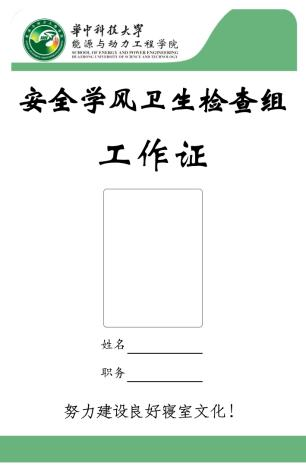 (1)安全卫生检查小组由各年级安全员组成,所有成员会佩戴统一制作的“6165金沙总站官方入口安全学风卫生检查组”工作牌。请同学予以配合,相互理解有礼貌。对于未佩戴工作牌、工作牌格式存在问题或工作牌照片和本人不相符的人员要求进入寝室检查不要相信,工作证如图。