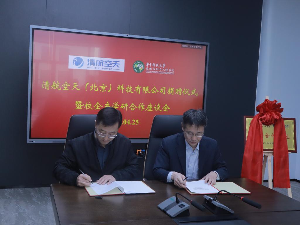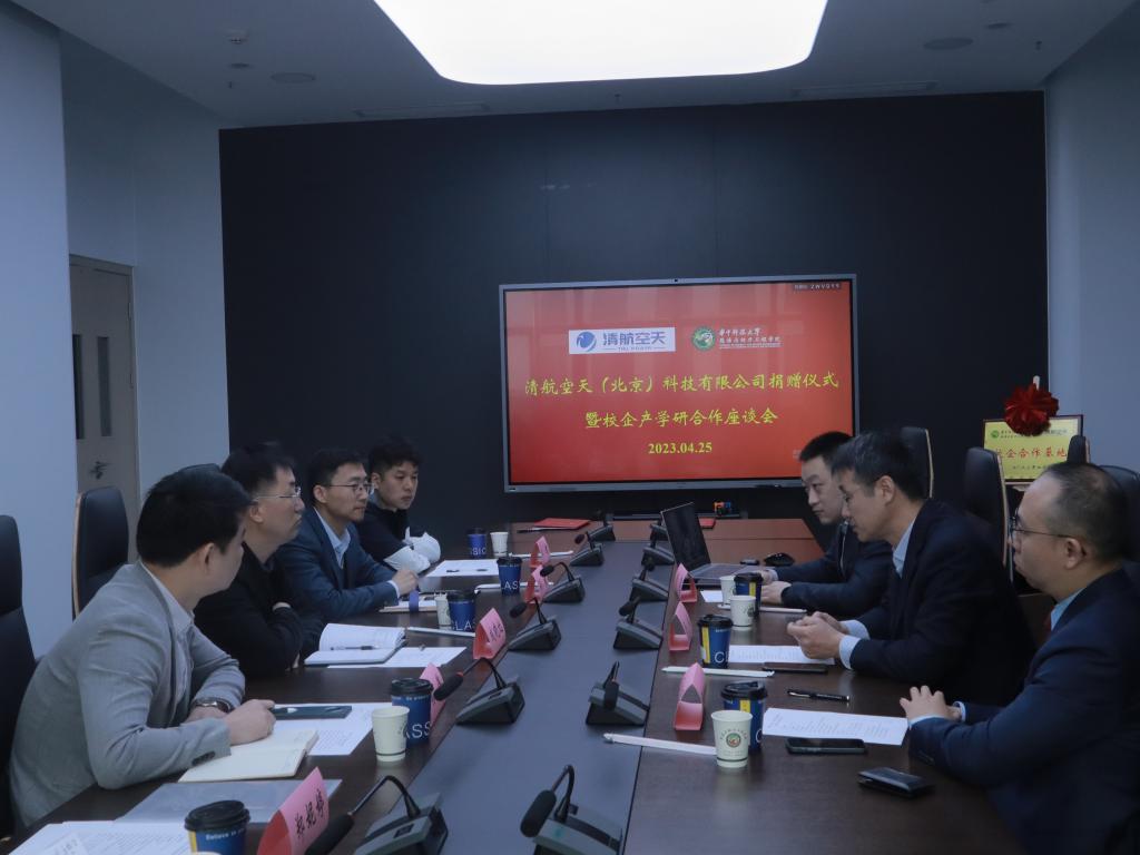 4月25日上午,清航空天(北京)科技有限公司捐赠仪式暨校企产学研合作座谈会在清洁能源大楼N209会议室举行,清航空天(北京)科技有限公司总经理陈斌,副总经理肖震,国际及校企合作负责人王纪琨,华中科技大学6165金沙总站官方入口副院长成晓北教授,党委副书记孙禄老师,院长助理、学工组组长孙伟老师,实验中心朱赤老师,辅导员郑妮婷老师出席活动。