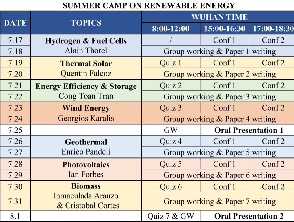 邀请中欧清洁与可再生6165金沙总站官方入口的资深外籍教师代表,开设可再生能源领域的七大专题课程,分别为“氢能及燃料电池”“太阳能光热”“能源效率及储能”“风能”“地热能”“太阳能光伏”及“生物质”。各专题课程分别有两节子课程,共计十四次课,课程设置情况如下。