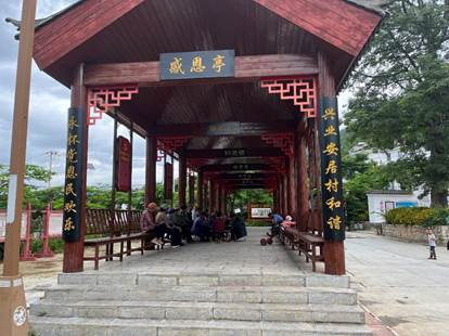 在驿亭广场,老人们在享受着悠闲的午后时光,这里记录了驿亭新村在脱贫攻坚工作中产出的卓越成果。姜书记介绍到,过去村民住宿偏远分散,易地搬迁改造的政策让群众住上了新房,享受着优良的基础设施。实践队员们纷纷感叹蚂蚁堆村翻天覆地的变化,切实感受到脱贫工程为当地群众生活带来的幸福和便利。
