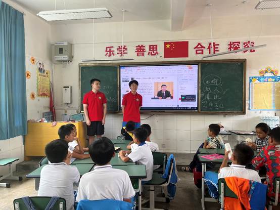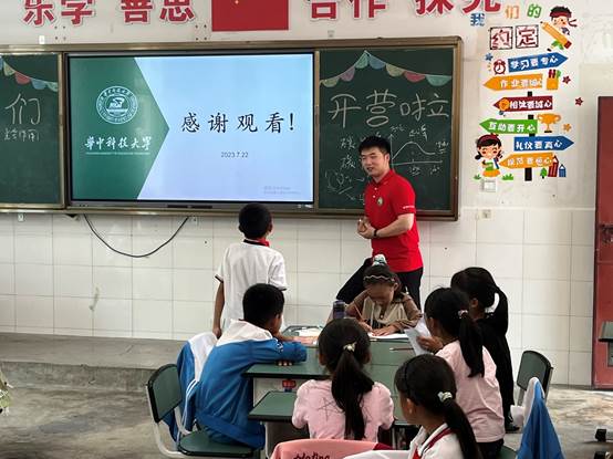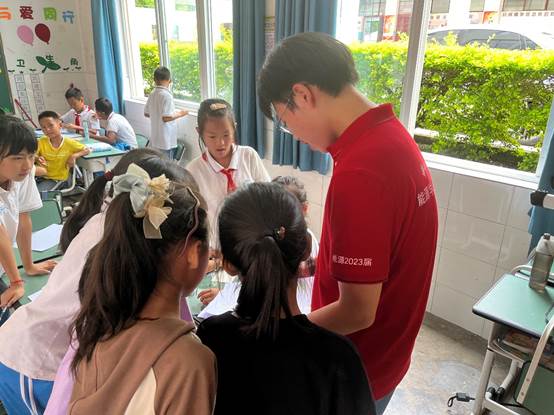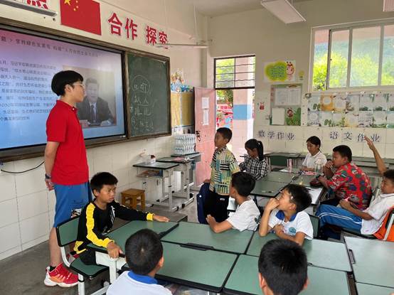 实践队员邓湛伟结合自己的研究生课题知识,从蚂蚁堆村的气候环境入手,介绍了碳排放过高会对气候的影响,引导小朋友们发现自己习以为常的生活习惯中有哪些节能减排潜力。短短的几堂课虽然不能让小朋友们彻底理解双碳,但科普知识无疑在他们心中种下了节能减排的种子。风起于青萍之末,浪成于微澜之间。青少年时期恰是树立理想、培养兴趣的关键期,这种兴趣引论对未来他们的学习之旅意义深远。