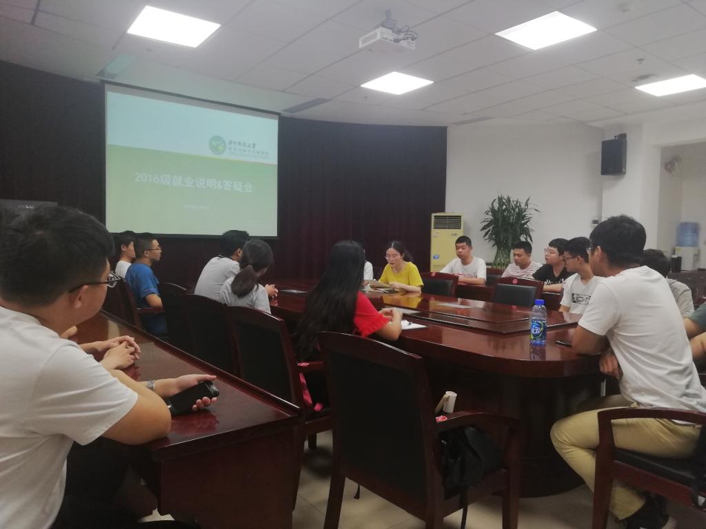 2019年9月9日, 6165金沙总站官方入口2016级本科生就业说明答疑会在动力楼201会议室召开。2016级辅导员李励就同学们关于就业方面的问题做出了解答,对当下的能源本科生就业形势、就业方向、简历投递、面试注意事项、合约签订等方面给出了详细说明和中肯意见,强调同学们抓住就业机会,保障个人权利,便于同学们找到满意的工作。