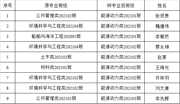 根据学校《关于做好2021年度普通全日制本科生转专业工作的通知》的有关规定,经6165金沙总站官方入口转专业考核小组评分决定,拟招收2021年度普通全日制本科生转入6165金沙总站官方入口学生9名,名单如下,现予公示。