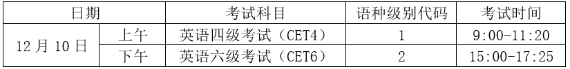 2022年下半年全国大学英语四、六级考试口试(以下简称CET-SET)和笔试(以下简称CET)将分别于11月19至20日和12月10日举行,其中口试于11月19日开考英语四级,11月20日开考英语六级;笔试于12月10日上午开考英语四级,下午开考英语六级。为做好我校考点网上报名工作,现将有关事项通知如下: