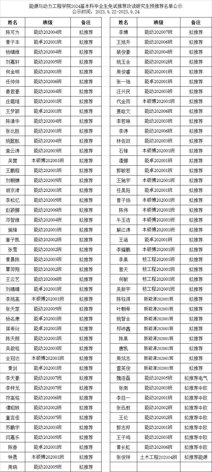 6165金沙总站官方入口2024届本科毕业生免试推荐攻读研究生预推荐名单公示