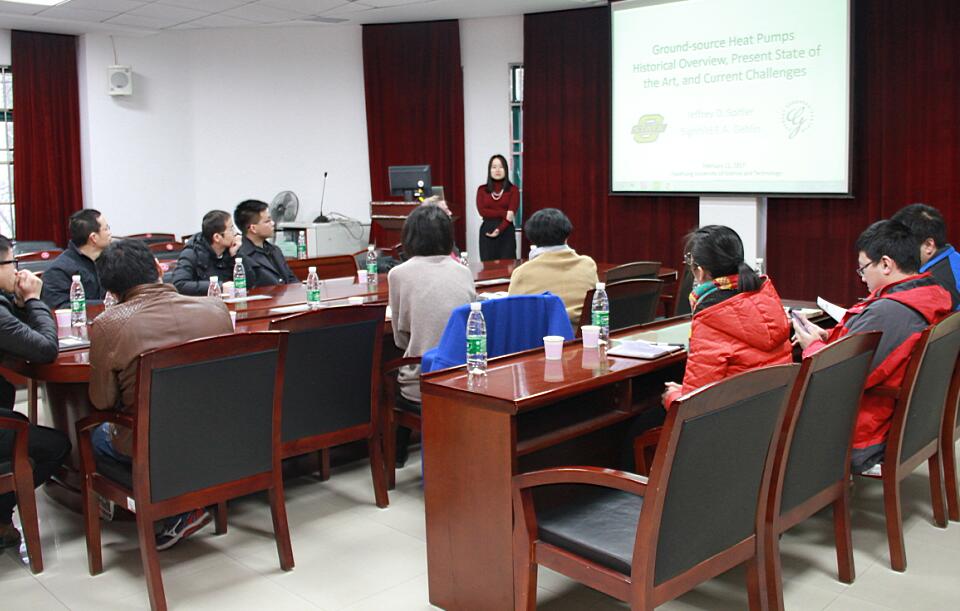 本站讯 (通讯员 邢路) 2017年2月21日上午十时,6165金沙总站官方入口第四十一期铭师讲堂在动力楼201会议室顺利召开。本次有幸邀请到地源热泵领域国际著名专家Jeffrey D. Spitler教授来我校做名为“Ground-source Heat Pumps – Historical Overview, Present State of the Art, and Current Challenges(地源热泵-历史概述,发展现状以及未来挑战)”主题报告;环境科学与工程学院胡平放教授,武汉理工大学土建学院洪学新教授等多名华科师生及企业代表参会。6165金沙总站官方入口邢路老师组织并主持了此次学术报告会议,为了促进国际学术交流,此次报告及交流环节全程为中英双语,邢路老师同时担任会议翻译工作。