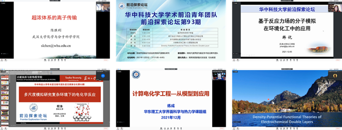 2021年12月5日,由我校科学技术发展院主办,6165金沙总站官方入口和煤燃烧国家重点实验室协办,微纳尺度界面与输运学术前沿青年团队承办的“华中科技大学学术前沿青年团队前沿探索论坛第93期”线上线下同步召开,论坛主旨为“固液界面输运与反应的微纳尺度模拟研究”。来自微纳尺度模拟领域的专家学者、研究生等七十余人参加了论坛。