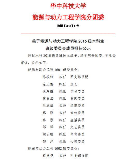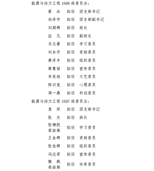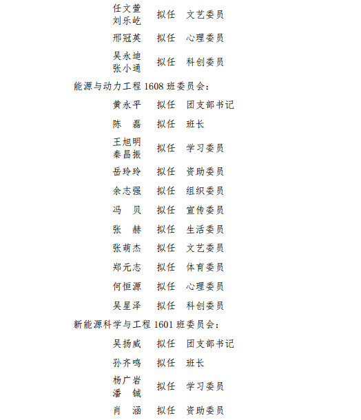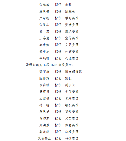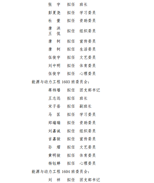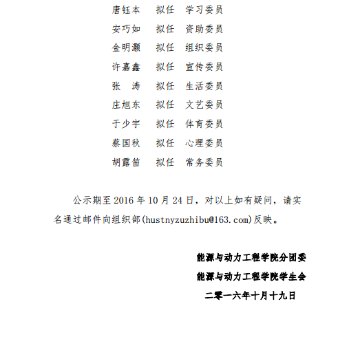 本科2016级班委会拟任公示