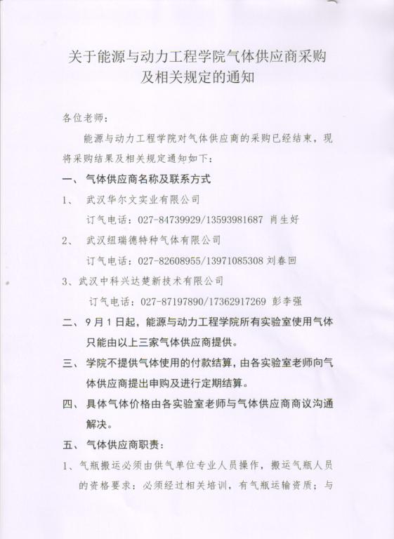 关于6165金沙总站官方入口气体供应商采购及相关规定的通知