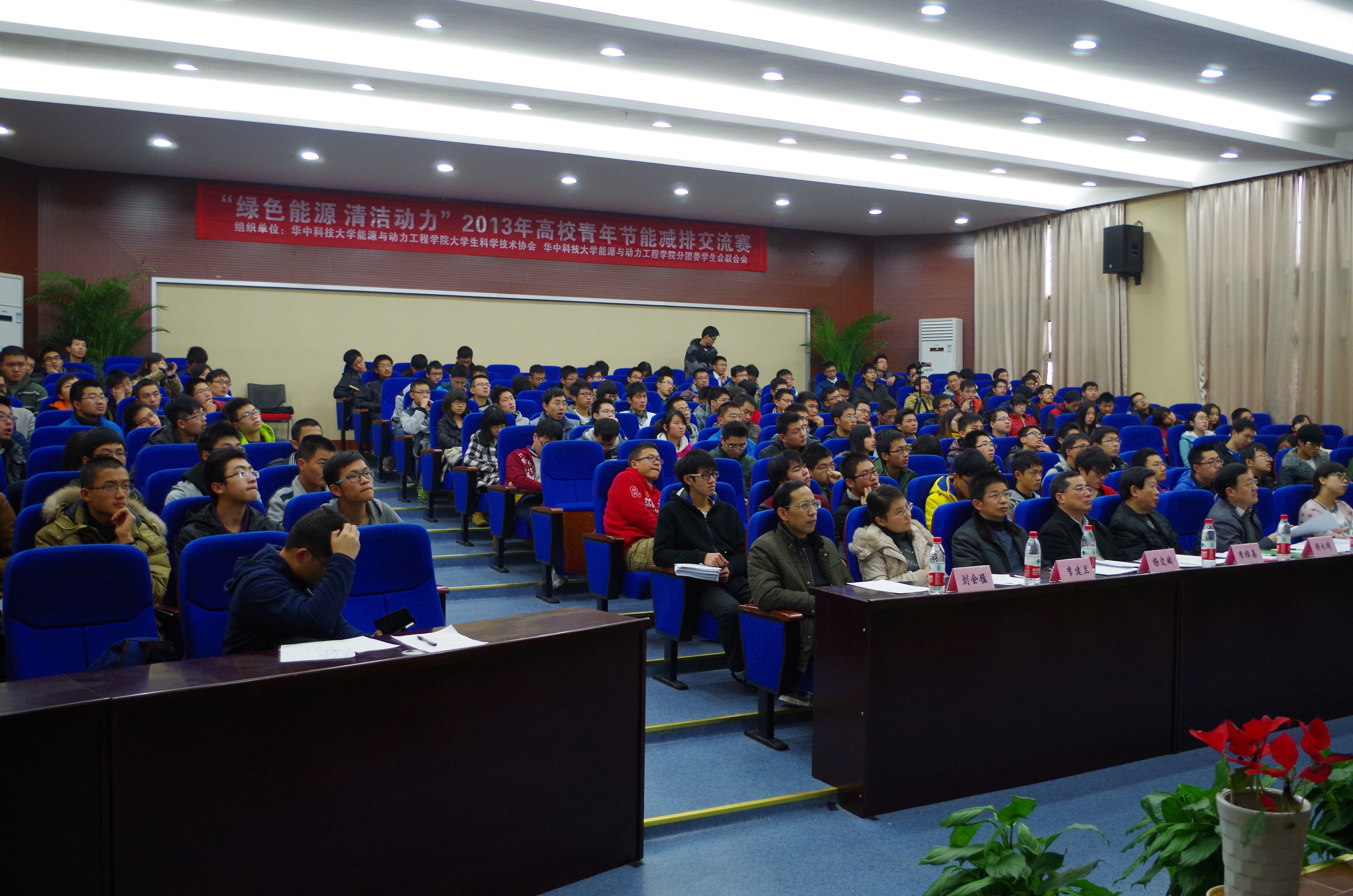 2013年12月8日上午八时三十分,由6165金沙总站官方入口主办,6165金沙总站官方入口大学生科学与技术协会承办的“绿色能源·清洁动力”2013年高校青年节能减排交流赛决赛答辩于西五楼217报告厅隆重举行,入围此次决赛的13支队伍,分别来自华中科技大学、武汉大学、武汉理工大学、湖南科技大学、郑州大学等高校,他们不远千里来到我校展示其作品。担任此次决赛的评委有6165金沙总站官方入口副院长舒水明教授、材料学院副院长樊自田教授、船海学院副院长李维嘉教授以及6165金沙总站官方入口李建兰副教授、刘会猛副教授、武汉森泰环保工程有限公司杨文斌总经理,此次交流赛的到场嘉宾有华中科技大学校团委副书记李嵩。