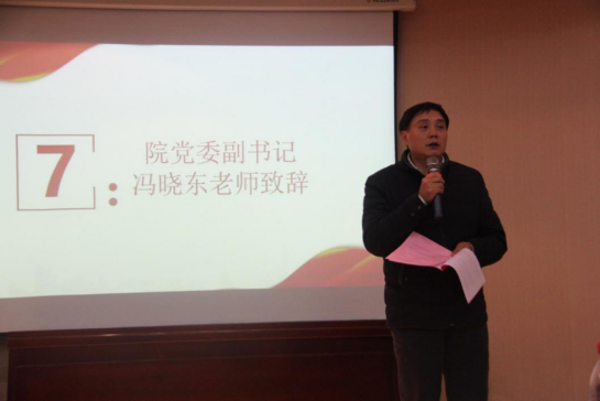 会议第六项,冯晓东老师致辞。冯晓东老师对本次党支部书记培训班进行点评和指导,冯晓东老师对整个培训班的过程进行了回顾,并对三个案例式教学与三个体验式教学进行了充分的肯定。冯晓东老师就三个体验式教学谈到:1.程序与内容在党组织生活会、党员发展大会、党员转正大会等中是很重要的。程序一定要完备,不能偷懒省略。内容一定要注意不能千篇一律,尤其是批评环节,对每个同学要有针对性;2.创新在生活中是必要的,但也要分清什么可以创新,什么不可以创新。学习的内容、学习的态度、选举与被选举的程序、会议的组织形式不能创新;3.党支部要做好班级的核心工作;4.党支部的领导艺术,在平时需要锻炼揣摩。就三个案例式教学谈到:1.一定要做到具体问题具体分析。不管是生活中遇到过的还是没有遇到过的问题,都要具体分析,要经得起刨根问底,不能一句话轻而易举的带过;2 批评与帮助。遇到做错事的同学,一定要进行批评教育,但在批评过后,还要进行帮助。3.纪律要严明。最后冯老师对在场的党支书提出希望,希望党支部注重细节,做好记录工作。工作做得好很重要,记录体现得清楚同样十分重要。