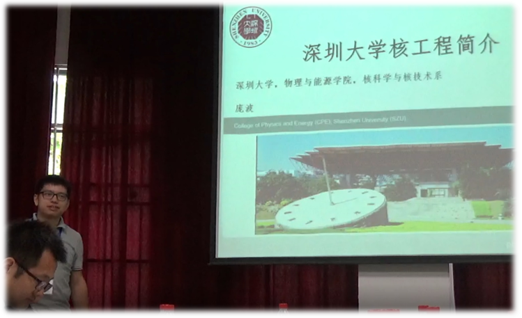卡尔斯鲁厄理工大学博士,深圳大学副教授庞波作了题为“深圳大学核工程专业简介”的报告,主要介绍了深圳大学核专业团队人员配备、已开展的科研工作简介、近期与中长期的发展规划。