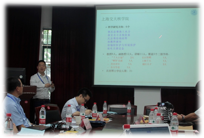 首先由杨军教授致欢迎辞。对各位杰出的青年核领域同行的到来表示欢迎,并期待更加深层的合作和交流。接下来由杨军教授就“先进反应堆安全分析认证方法研究”这一课题向各位展示了近年的研究成果以及后续工作方向。主要研究目标为:建立第三代先进压水堆典型失水事故最佳估算优化建模方法和规范;评估最佳估算程序对该堆型典型失水事故的的模拟能力。形成一种具备增强的不确定性分析能力的CSAU方法。关键点在于:CSAU方法在对反应堆失水事故最佳估算的总体不确定性进行区别和量化分析上存在困难,将通过引入“理想缩放”模型,解耦相关不确定性来协助解决此问题。