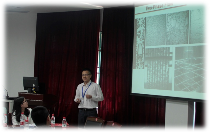 接下来由普渡大学博士,弗吉尼亚理工大学助理教授刘洋作题为“两相流研究的最新进展”的报告。两相流的准确测量、分析和数值模拟是核工程、化学工程等相关领域的核心研究课题之一。报告中主要展示了试验及模拟情况下两相流的动态情况,使用PIV和PLIF高速相机成像后对两相流气泡的高精度追踪、三维重建和模拟。