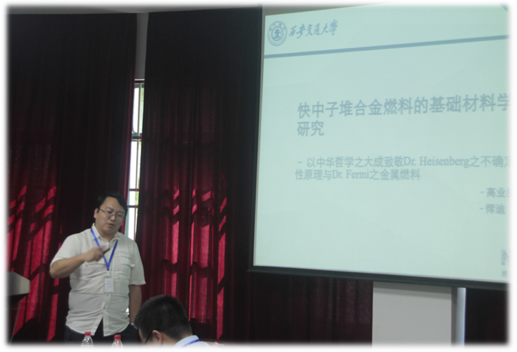 第二位作报告的是伊利诺伊大学博士,,西安交通大学教授恽迪,就“快中子堆合金燃料的基础材料学研究”这一题目向大家向大家做了汇报。分别讲解了快堆金属燃料、包壳材料的特点及其堆内行为。金属燃料是燃料循环综合经济性和安全性相对最平衡的核燃料;核能业界没有全能无死角的核燃料体系 – 真正的燃料选型应基于快堆在整个燃料循环中的拖动作用并切实考虑未来核能现实的基荷运行体量下的成本问题;从燃料制备经济性、燃料堆内增殖能力、堆内可达到燃耗、核不扩散以及后处理技术的成熟度与经济性上综合体现出金属燃料的特有优势;金属燃料特有的固有安全性特征及其安全隐忧;金属燃料失效实验数据之谜 - IAEA为金属燃料和混合氧化物燃料定下的推荐燃耗上限为10at.%(俄罗斯BOR-60燃料棒最高实现燃耗35%,FFTF金属燃料最高实现燃耗25%);包壳材料辐照稳定性成为快堆燃料燃耗的主要限制 – 然而,包壳的诸多安全问题来自于其与燃料芯体(芯块)兼容性和相互作用(裂变气体释放等),因而芯体的性能改良不可忽视。