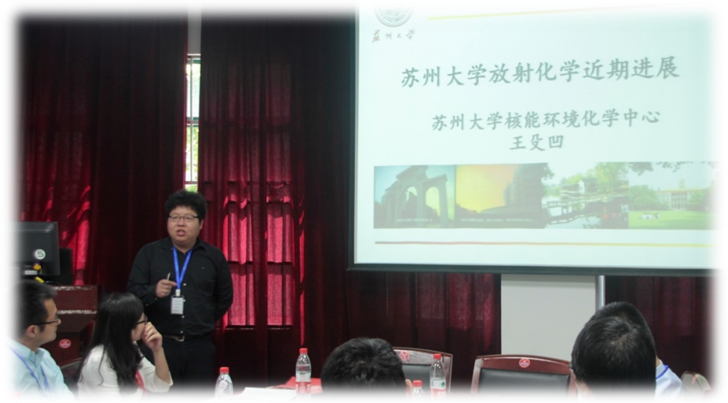 第三位作报告的是(美)圣母大学博士,,优秀青年基金获得者,苏州大学教授王殳凹。王殳凹教授在年仅29岁的时候就完成了显著的工作,获得了自然科学基金委优秀青年基金。王殳凹教授为大家介绍了苏州大学放射化学的近期进展,其中包括苏大放射医学、环境放射化学研究平台、锕系元素化学性质、锕系元素周期律、基于聚合硼酸根的镧系锕系分离方略、新型镧系及镧锕分离理念、Eu(III)和羟基磷灰石(HAP)的作用机制及其应用研究等方面,向我们打开了与化学及物质有关的核材料的知识的新大门。