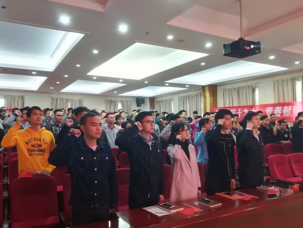 为培养学生党员牢固树立“四个正确认识”,强化“四个服务”意识,迎接党的十九大胜利召开,2017年10月18日8:30,6165金沙总站官方入口组织全体新发展党员开展授予党章党徽、集中宣誓仪式,集中观看“十九大”开幕式,活动在动力楼402报告厅顺利召开。参加本次活动的有6165金沙总站官方入口副院长罗小兵老师、党委副书记冯晓东老师、全体辅导员老师、全体学生党支部书记、学院学生组织主要学生干部、全体新发展党员、部分教师代表等,共计150余名师生齐聚一堂,共同参加本次活动。