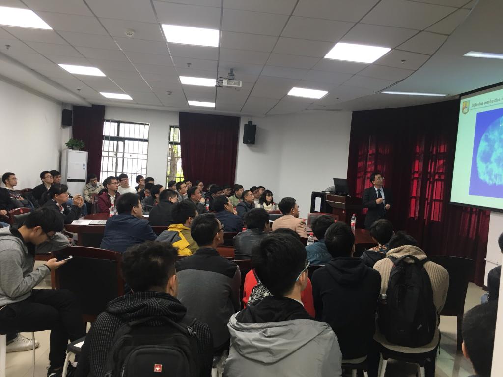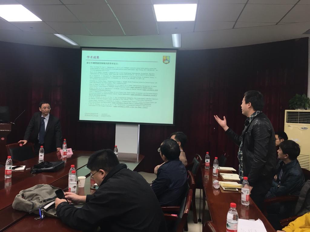 报告开始前,成晓北教授向在座的师生隆重介绍了徐宏明教授。徐宏明教授长期从事先进汽车动力系统和未来燃油的前瞻研究,研究成果在能源和汽车领域得到应用:最早一批研究均质压燃燃烧方式(HCCI),建立了完整的HCCI燃烧控制策略,突破了HCCI和火花塞燃烧的平稳切换的难点;提出了柴油和汽油混合的均质Diesoline燃烧模式,该设想被世界上许多研究机构采用并进一步发展;作为国际上呋喃类生物燃料在发动机中燃烧特性研究方面领先的科学家,研究成果被科学界广泛关注;近年来,徐宏明教授开始致力于利用人工智能方法进行汽车动力系统优化与控制方面的研究,所提出的HCCI、GDI汽油机智能标定方法,双回路EGR柴油机瞬态控制及智能标定方法,混合动力汽车智能构型方法等均获得了工业界的认可,其中开发的相关软件的使用权被福特汽车公司收购,并应用于实际汽车动力系统的研发。在SCI/EI期刊及业内颇具影响力的国际会议上发表论文300余篇,参与了4本专著的撰写。多年来获得欧盟地平线项目(EU Horizontal 2020)、英国工程与物理科学基金会(EPSRC)、英国技术创新基金(Innovate UK)等科研基金资助总额超1千万英镑。2005年和FEV总裁亚琛大学毕兴格教授一起获得波兰内燃机协会勋章,2011年被授予“伯明翰英雄”称号,表彰其在科研领域所作的突出贡献。
