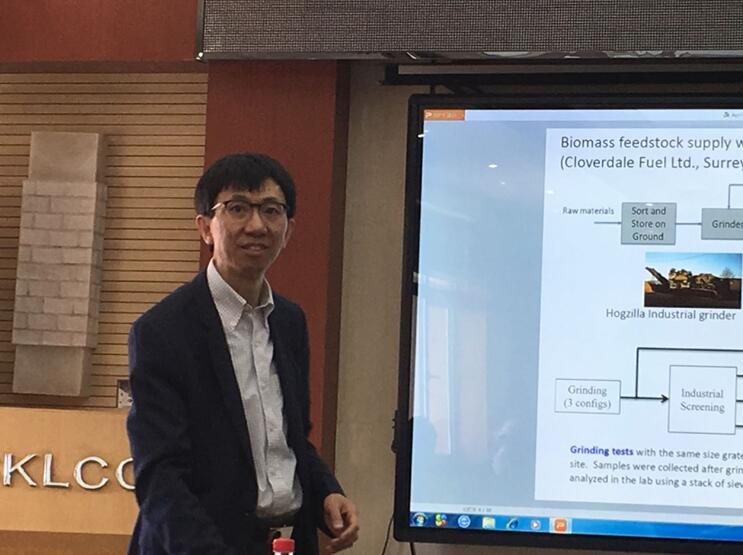 Anthony Lau教授做了题为“Quality improvement and management of lignocellulosic waste biomass”的报告,主要介绍了木质纤维素类生物质废弃物在固体燃料及热化学转化中的应用,讨论了生物质原料特性与已在UBC实际应用的工业气化炉性能之间的联系,同时介绍了去除生物质灰分及无机成分的技术战略等。