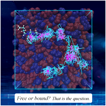 从化学角度来看,合成离子液体的阴-阳离子组合有无限多的可能;从物理角度来看,离子液体是一种独特的液体:具有强库仑相互作用的致密的室温等离子体。为了表现其电解质特性,离子液体中的离子必须能够传输。但它们如何在如此致密的环境中进行传输的呢?在输运过程中离子展现什么样的动态特性呢?冯光教授数年前通过追踪离子的运动轨迹开始探讨这些问题,随后受启发于美国Israelachvili院士的工作(PNAS 2013, 110, 9674)——“欠屏蔽悖论”(即,实验推测出离子液体仅含0.003%的自由离子,这与离子液体较高的电导率相悖),开始利用离子的运动轨迹来探究离子液体离子的自由和束缚状态。