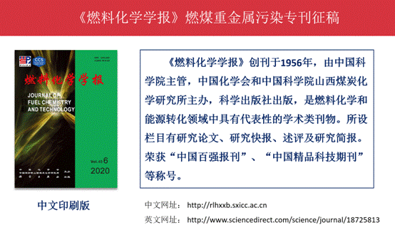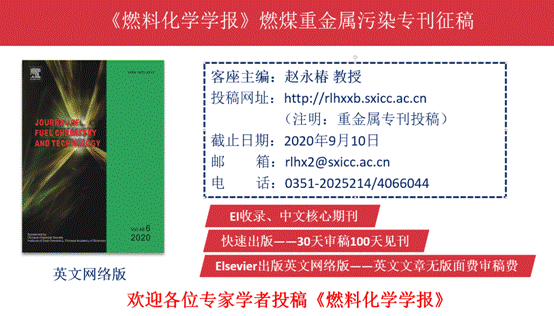 本次会议结束后,将由《燃料化学学报》组织“燃煤重金属污染”专刊,由赵永椿教授担任客座主编。截稿日期为2020年9月20日,预计2020年底见刊。
