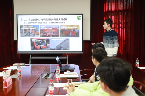 硕2002班党支部的张铭辉同志结合自身对党史的学习体悟,为大家讲授了“伟大的历史转折——中国共产党早期在武汉的革命探索”微党课。支部的王勇积同志给大家分享了支部开展的“聚焦能源低碳发展,加强华中大能源人凝聚力”主题实践调研活动成果。支部的其他成员分别就理论学习、参观实践、志愿服务、基层挂职以及支部开展的“读原著、学原文、悟原理”读书会等方面分享了此次党史学习教育系列活动的收获与体会。