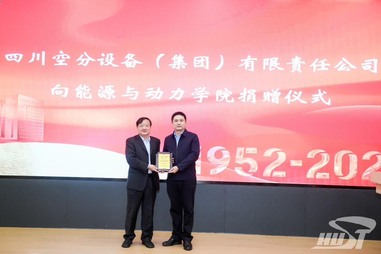 在随后的捐赠仪式上,解孝林代表学校向四川空分设备(集团)有限公司颁发了捐赠纪念牌。长期以来,广大校友和企业始终关心学院发展,积极捐资助学,支持学院建设多个重要科研平台,设立多项奖助学金,支持建设动力楼、清洁能源大楼。学院对他们作出的突出贡献表示衷心感谢。