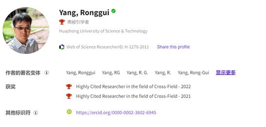 杨荣贵教授已发表了包括4篇Science、4篇Nature Materials、3篇Science Advances、4篇Joule、1篇Review of Modern Physics、近20篇Physics Review在内的200余篇期刊论文。Web of Science被引频次总计20000余次,H指数为69,(Google学术总引用次数26000余次,H指数为80,2022年度引用次数将近5000次)。杨荣贵教授已经培养了30多位博士生和博士后。其中约20位被中国科学院、上海交通大学、同济大学、华中科技大学、东南大学、吉林大学聘为教授、副教授。
