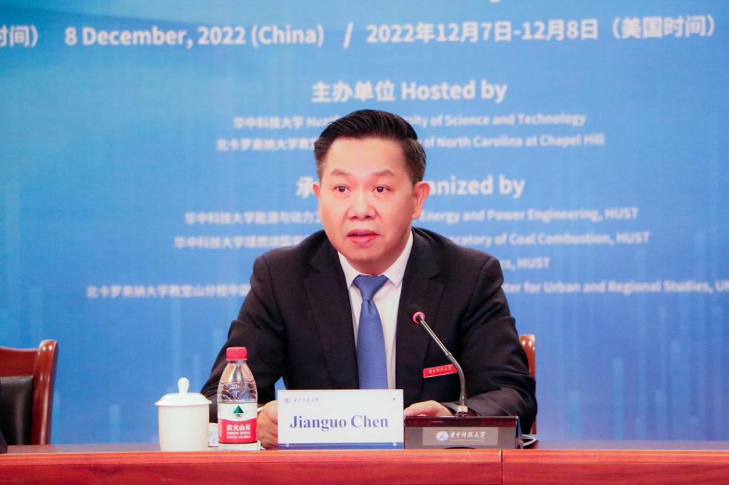 陈建国在致辞中指出,全球气候变化威胁不断升级,极端气候灾害日趋严峻。国际社会已对碳中和路径下的绿色转型凝聚起强大共识,中国和美国都在用实际行动推进全球绿色转型发展。在此背景下,华中科技大学与北卡罗来纳大学教堂山分校作为中美两所具有高度社会责任感的研究型大学,共同发起年度性高端学术活动,旨在为全球学者、政策决策者、行业专家提供开放的交流研讨平台。期待双边学者以此为契机,增进交流与互信,激发新合作潜能,引领未来碳中和领域科学研究,助力全球可持续发展。