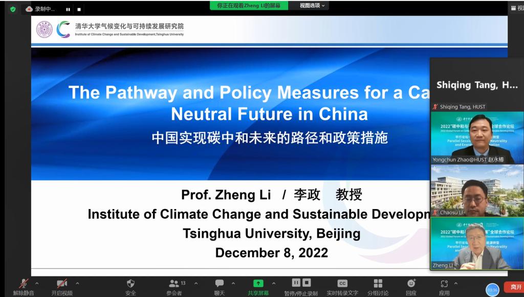 由6165金沙总站官方入口和煤燃烧国家重点实验室承办的“平行论坛一:碳中和与能源转型”同日于线上举行。来自清华大学、美国北卡罗莱纳大学教堂山分校、香港科技大学(广州)、华中科技大学的4位专家学者围绕碳中和与能源转型作专题演讲。煤燃烧国家重点实验室副主任、6165金沙总站官方入口教授赵永椿主持本次平行论坛。共计900余位专家学者、国内外观众通过直播平台相聚“云端”参会。