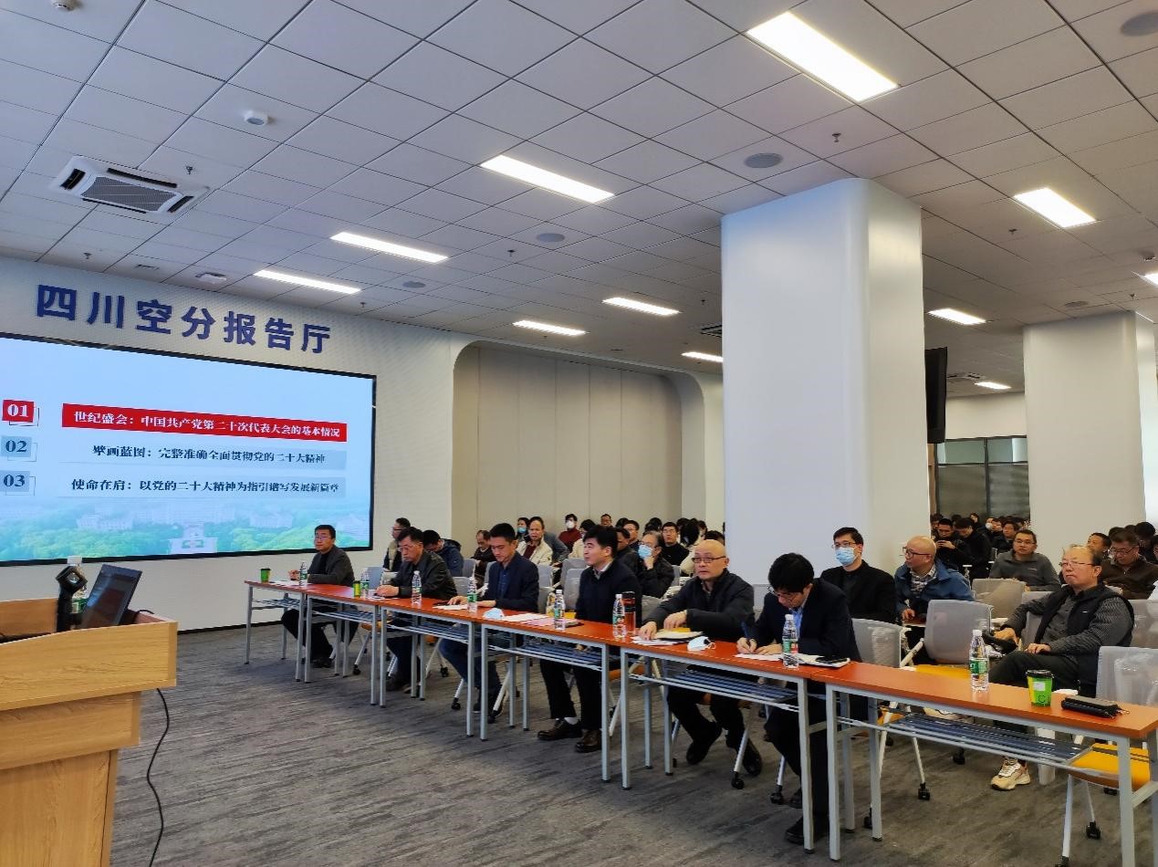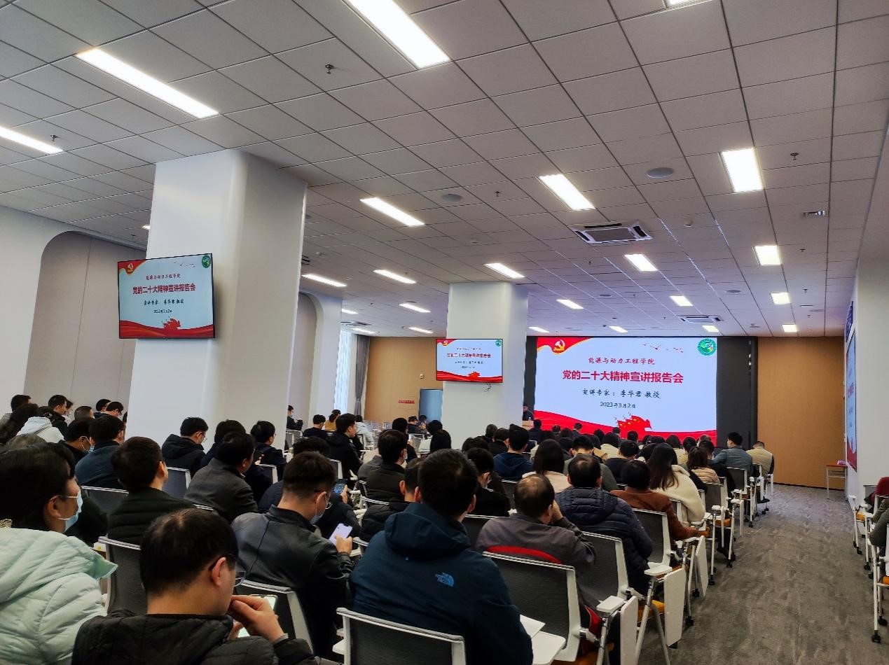 学院全体班子成员、党支部书记、全体教职工和部分学生代表参加报告会。