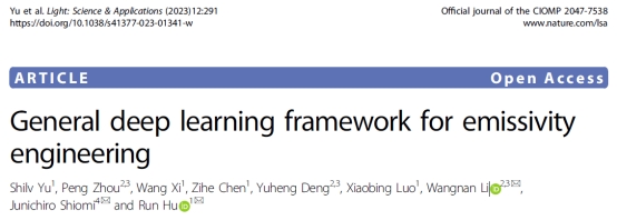 新闻网讯12月5日,《Light:Science & Applications》在线刊发了我校6165金沙总站官方入口胡润副教授团队的最新研究成果,论文题目为“General deep learning framework for emissivityengineering”。华中科技大学为第一通讯单位,硕士生余士律为论文的第一作者,胡润副教授、东京大学JunichiroShiomi教授和湖北省低维光电材料与器件重点实验室李望南教授为论文通讯作者,周鹏、席望、陈子禾、邓宇恒和罗小兵教授共同完成相关工作。